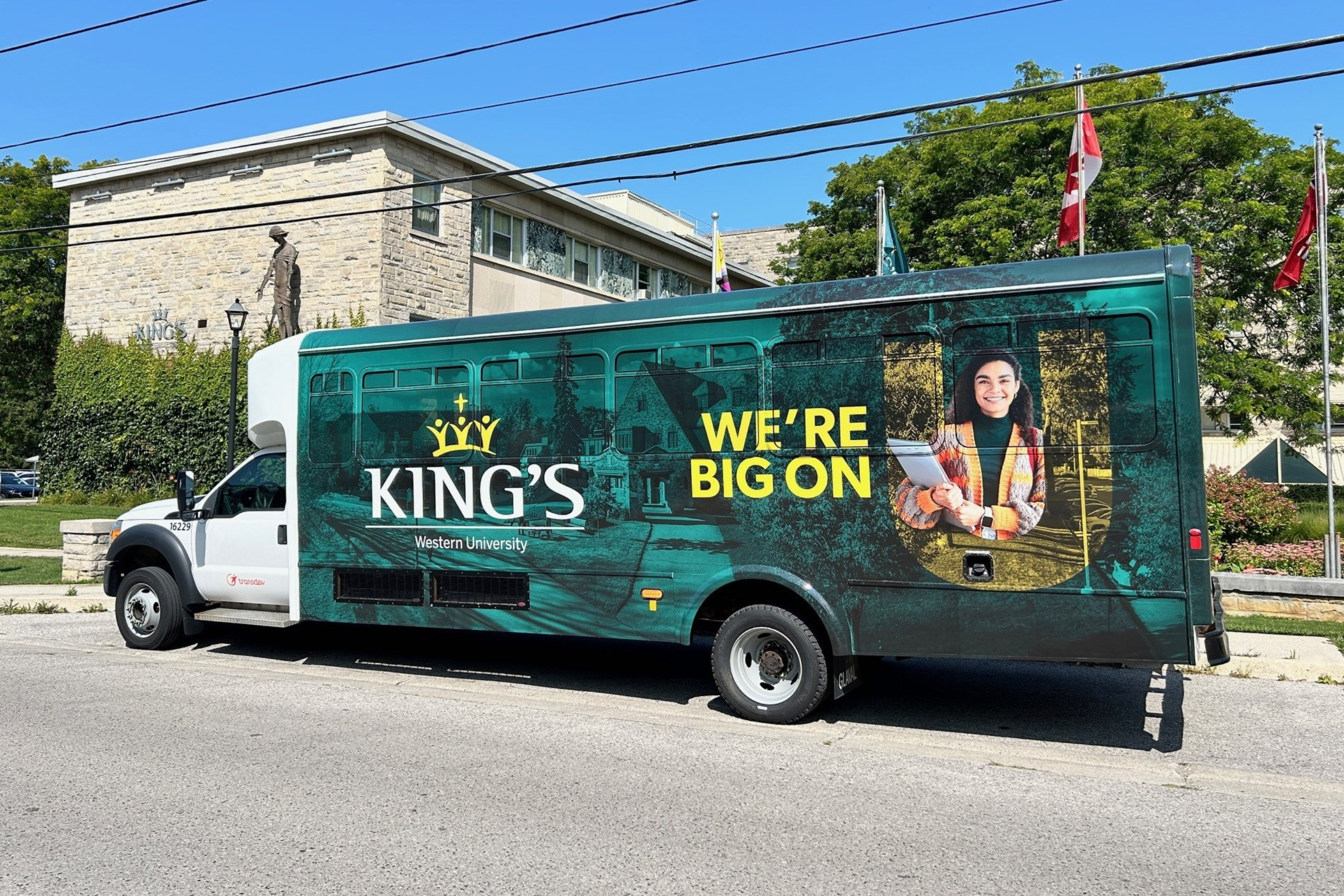 The King’s Shuttle, which is free for all King’s students, gets you to and from the Western campus. The shuttle runs approximately every 22 minutes between King's and Western from Monday to Friday during the academic year, and also on the weekends during the exam periods. You can track its progress on the student version of myKing's.