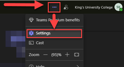 In Microsoft Teams, click Settings and More(three dots in the top right).