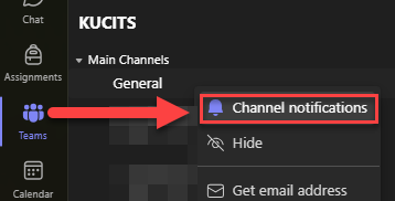 Go back to the notifications window and scroll down to Set channel notifications. Click Channels.